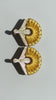 What materials are used: mirrored acrylics, wood, double satin ribbon, hypoallergenic steel post / with butterfly backs
